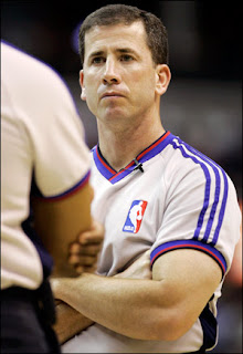 - une de vos plus grandes vedettes qui organise des combats de pit-bulls ? Pas terrible pour l’image de marque d’une ligue professionnelle. Mais alors que dire d’un arbitre endetté qui se retrouve lié à la mafia et qui se met à arranger les scores des matches dans lesquels il officie ? Potentiellement dévastateur. Depuis que la nouvelle est sortie vendredi dans le New York Post, la NBA est virtuellement en danger de mort, contrainte de faire face au plus gros scandale de son histoire, un cauchemar que David Stern échangerait sur le champ avec tous les combats de pit-bulls de la Terre. Car franchement, si on ne peut plus avoir confiance dans le résultat des matches, pourquoi les regarder ? Pourquoi les jouer ? Le basket n’est pas du patinage artistique, ce sont les joueurs qui doivent décider du résultat, oui ou non ? Enfin, c’est ce que je croyais. Quoiqu’il en soit, cette affaire est du pain bénit pour les adeptes de la théorie du complot qui sont particulièrement actif autour de la NBA depuis des années (playoffs, loterie). Voilà qui va leur permettre de dire : « Vous voyez bien que tout est truqué ! » Ont-ils raison pour autant ? Probablement pas, quand on sait que ce sont les mêmes qui nous bassinent avec Roswell, JFK et le 11 septembre. Laissons-les à leurs fantasmes. Mais, tous les journalistes un peu sérieux le confirment, cela ne doit pas occulter les gros problèmes d’arbitrage des dernières saisons, la série Suns-Spurs du mois de mai et les finales 2006 (aussi connue sous le nom du « Dwyane Wade sur la ligne des lancers-francs Show ») en tête. Honnêtement, je ne vois pas assez de matches, et je suis loin d’être un expert de l’arbitrage NBA, pour pouvoir dire si le problème a atteint les proportions de « Marseille au début des années 90 » ou de « Juventus pendant le 20ème siècle ». Je ne fais que lire les articles de journalistes américains outragés. La NBA, c’est-à-dire David Stern, doit réagir, il en va de sa survie. Sans rire. (au fait, l’arbitre incriminé s’appelle Tim Donaghy, il a 40 ans, 13 ans de carrière dans la NBA, et, comme vous pouvez le voir sur la photo, a « Gros con » écrit sur la figure. Comme quoi il faut toujours se méfier des types avec une sale gueule.) (MAJ : Stern en conférence de presse : « C’est un cas isolé, le fait d’un criminel/Je me sens trahi/Tout sera mis en œuvre pour remédier à la situation » Paroles, paroles, paroles…)